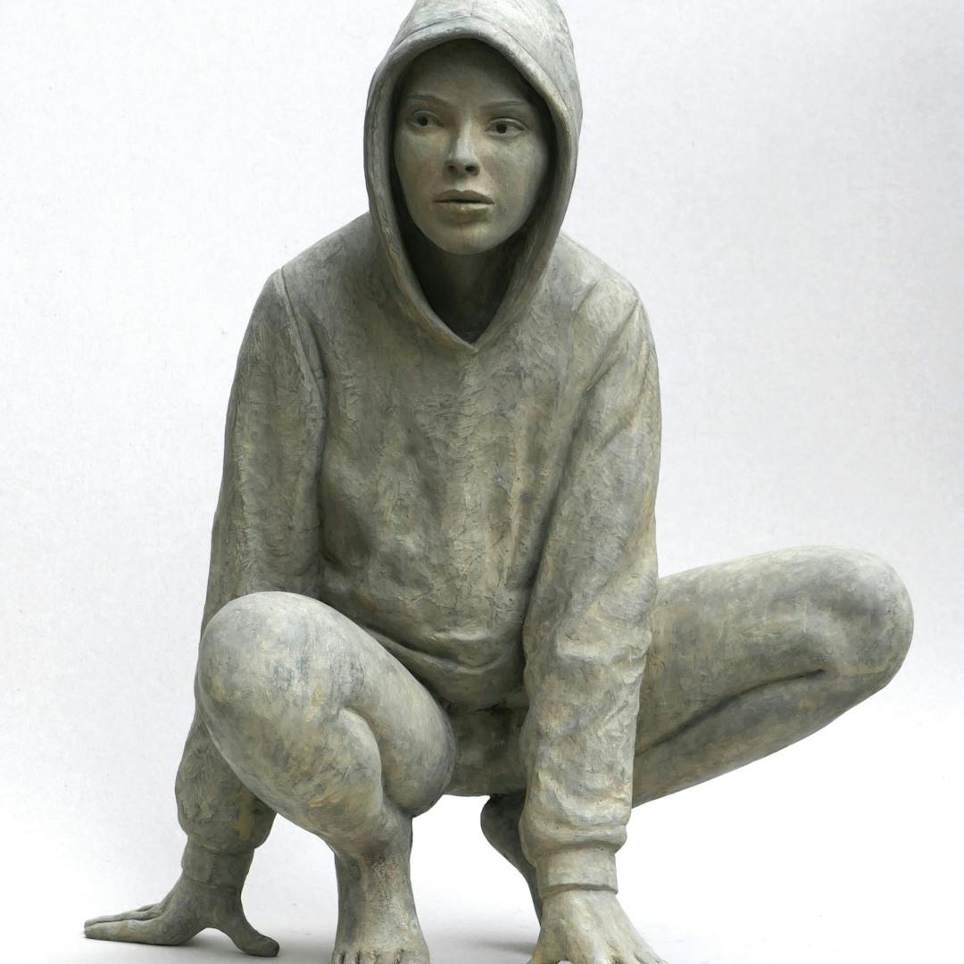 Ik maak hedendaagse figuratieve bronzen beelden van mensen, soms in combinatie met een dier. Ze laten zich het best omschrijven als poetisch. Elk beeld is met aandacht en oog voor detail gemaakt. Die aandacht ervaar je ook wanneer je ernaar kijkt. Mijn beelden raken vaak iets, wat niet direct zichtbaar is.